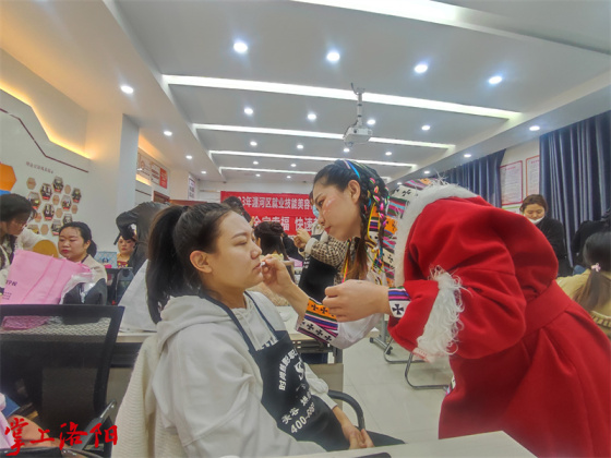 身着汉服、唐装、藏服、延吉服装等,调整妆容……14日上午,在瀍河区华林街道君澜湾社区,参加该区美容师技能培训的学员们造型美艳动人。当天,她们不仅将在这里结业,还将参加随后在现场举行的招聘会。 原来,今天是时尚魅影瀍河区美容师班结业招聘会,瀍河区有关部门邀请用人单位到现场挑选人才,推动学员实现“结业即就业”。 上午10点半,招聘会正式开始。“薪资怎么样?”“薪资由什么组成?”“工作时间灵活吗?”招聘会上,在用人单位介绍完用工需求后,学员们就自身关心的问题向用人单位咨询,以便寻